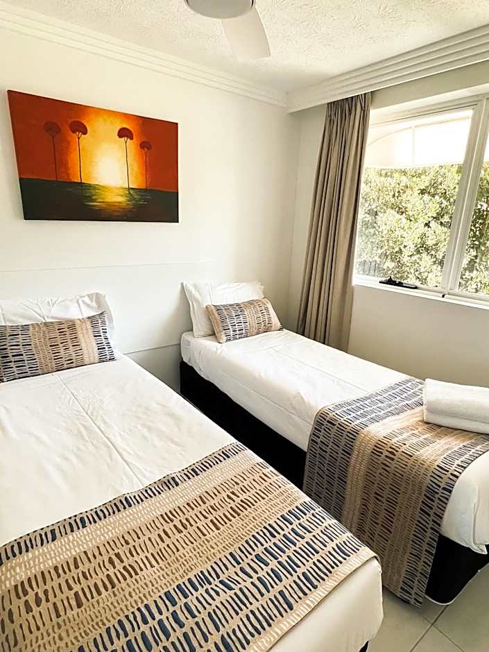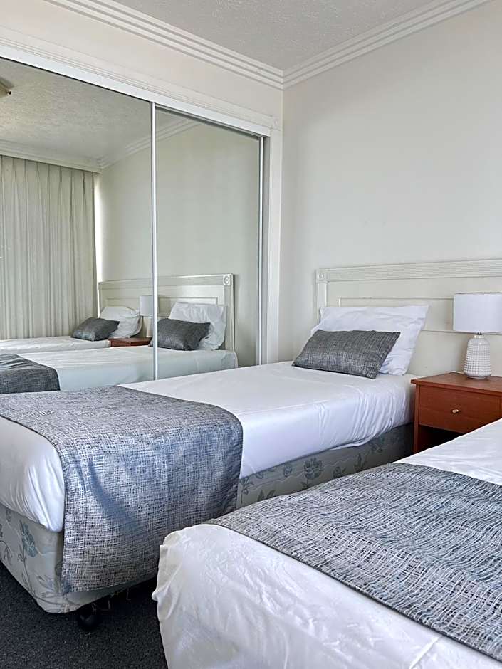 Fully self contained unit, with one queen size bed and 2 single beds. These units have North/West ocean views.